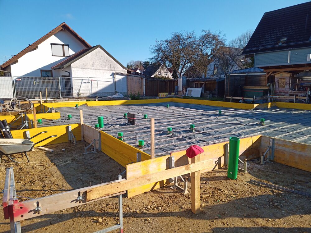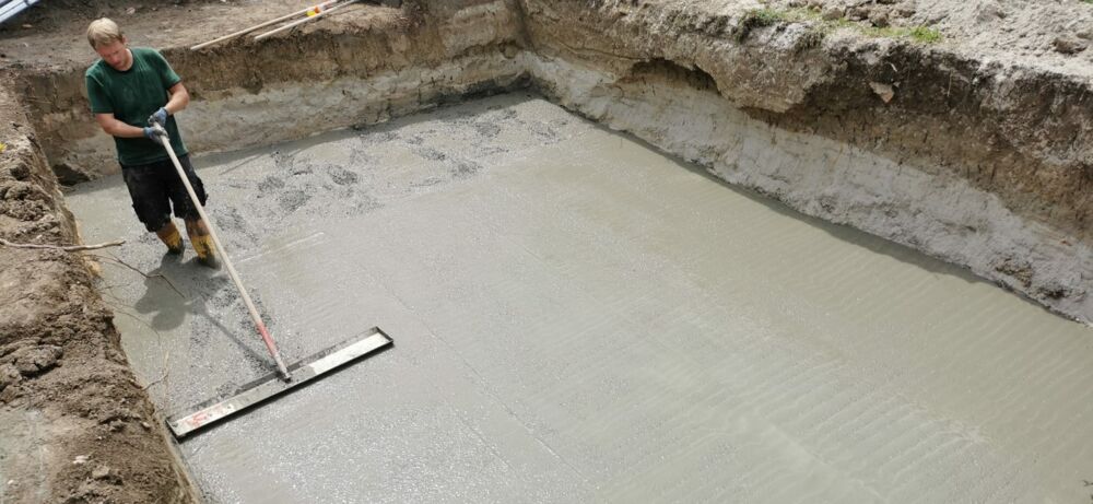 Zement, Wasser und Kies - das ist Beton. Zum Einsatz kommt er bei Fundamenten, Boden- und Deckenplatten, Kellerwänden, Treppen u.v.m.